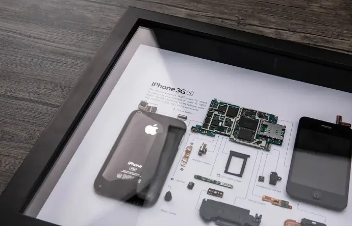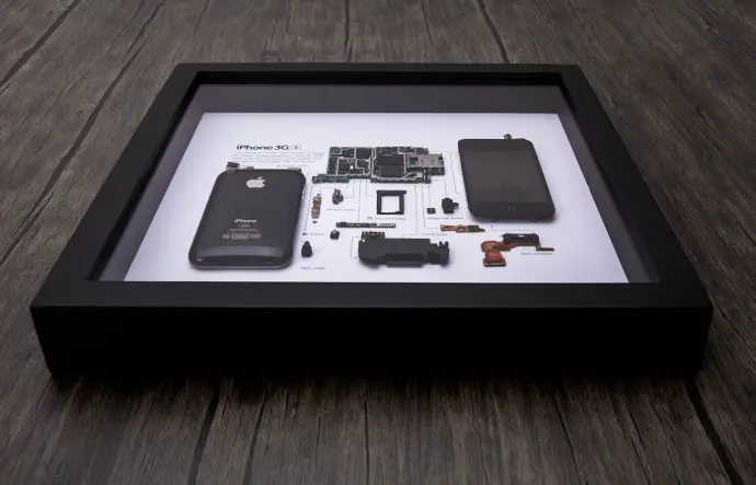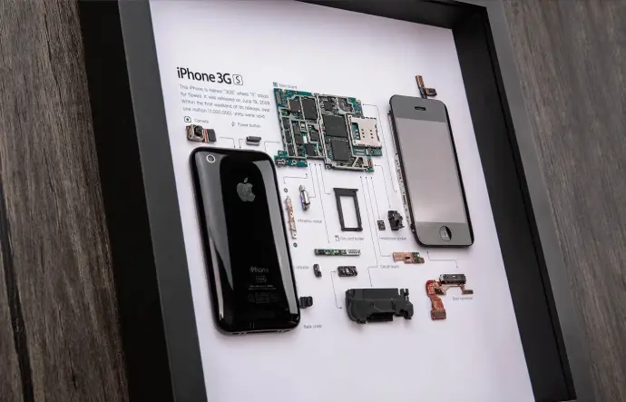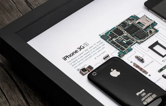 Discover the iconic iPhone 3GS with this premium wall art. Launching on June 19, 2009, the 3GS sold over one million units in its first weekend, demonstrating its immense popularity. This 13 x 13 x 1.8 inches piece will be a timeless reminder of modern technology.